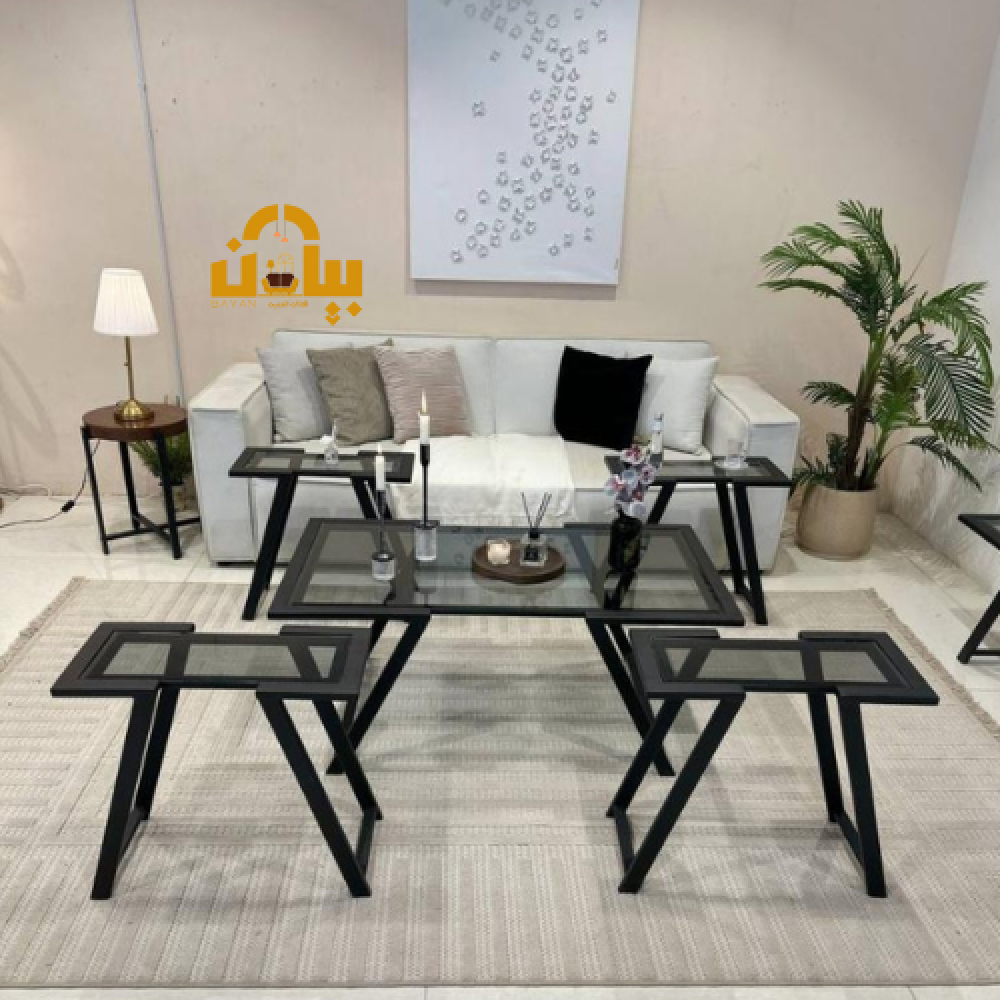 يتكون من طاولة رئيسية كبيرة الحجم وأربع طاولات خدمة صغيرة.